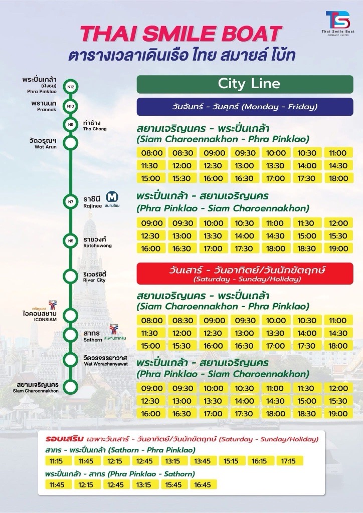 チャオプラヤ川を走るボートはいろいろありますが、電動フェリー「タイ・スマイルボート」をおすすめします。なぜなら、エアコンが効いているし、電車より安いし、人も混んでいません‼電車だったら、混んでいてずっと立たなければなりませんが、「タイ・スマイルボート」は乗るたびにいつも空いている席があります。「こんなにいい交通手段あるの?」と思うくらい便利です。