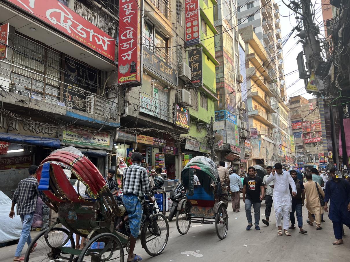 中でも、「オールドダッカ(Old Dhaka)」には大きな市場通りがいくつかあり、中でも大きいこの市場通りは大勢の地元の方々が買い物のために集まり、非常に活気のあってカオスな雰囲気を味わえます。